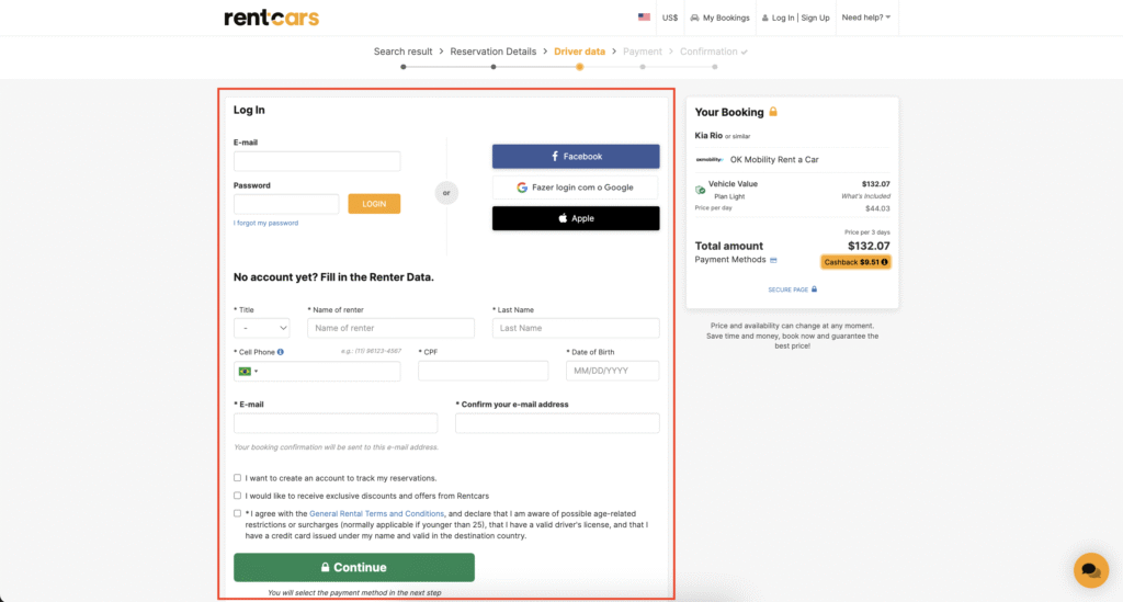 The next part is simple: just add your information so we can confirm the car rental booking with the provider.