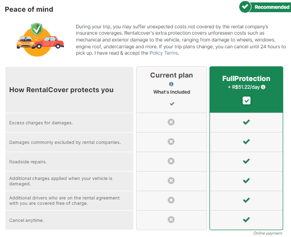 So how do you get in on this action? Easy-peasy. When you book your ride on Rentcars, just head to the Car Details section, where you can choose your vehicle category, rental company, and price, among other options. Simply add RentalCover to your reservation, and you’re all set!